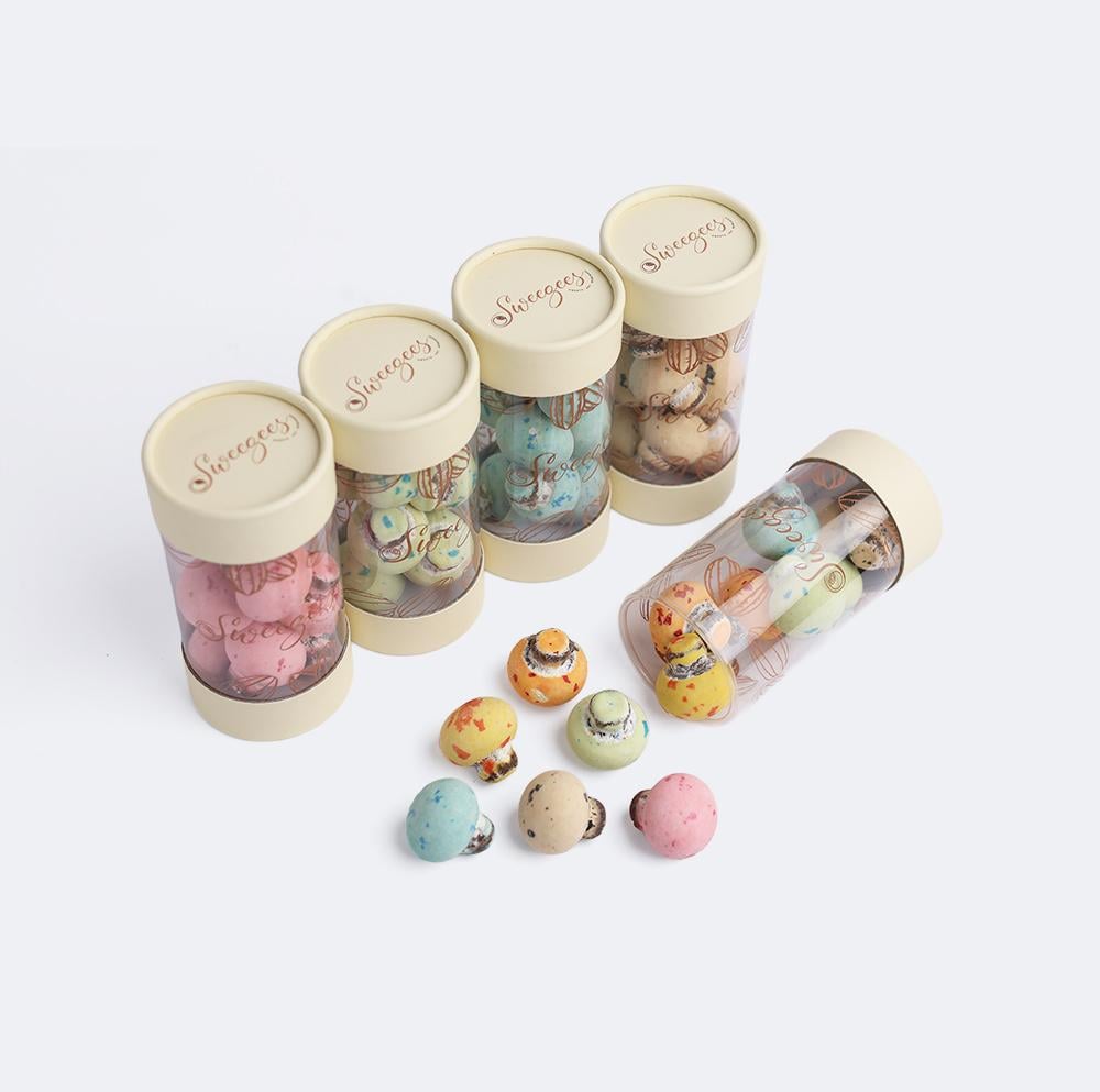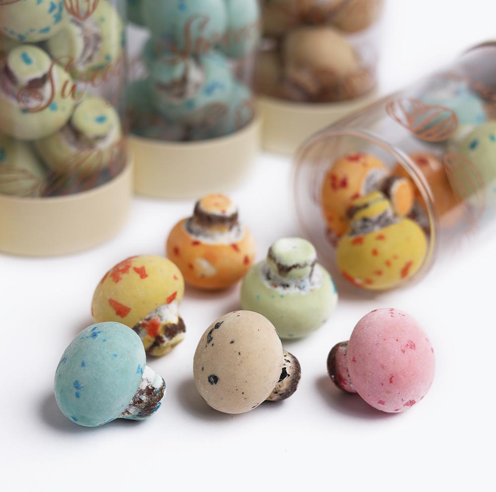 شوكولاتة الفطر محشوة بكريمة البندق، مغطاة بطبقة سكر ملونة تجمع بين الحلاوة والنكهة المميزة